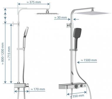 Entspannen Sie wie im Urlaub mit dieser Wellness Regendusche: Die große, ultraflache Kopfbrause aus Edelstahl verwöhnt Sie mit einem üppigen, weichen Regenstrahl. Durch die höhenverstellbare Teleskop-Duschstange können Sie die Kopfbrause auf Ihre individuelle Duschhöhe einstellen. Die Standardanschlüsse gewährleisten eine leichte und schnelle Montage: einfach an die vorhandenen Rohrleitungen für die Dusch- oder Wannenarmatur anschließen. Das Duschsystem ist hochwertig ausgestattet mit einer komfortablen Design Thermostatarmatur in neuer Optik mit integrierter Ablage aus anthrazitfarbenem Sicherheitsglas , einer ultraflachen 300x300 mm großen Edelstahl-Kopfbrause, einer Handbrause mit 3 Funktionen und einem 1,5 m langen Brauseschlauch mit glatter Oberfläche und bietet so eine preisgünstige Komplettlösung zur einfachen Gestaltung des Duschbades.
