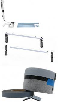 - Zum Lieferumfang gehören: Exzenter Ab- und Überlauflaufgarnitur (beinhaltet Ausstattungsset verchromt und Designelement in mattchrom, rückstellbaren Drehknopf, Bowdenzuglänge: 650 mm, Abgangsbogen 45° DN 40/50 mm, Bauhöhe: 110 mm), Montagewinkel (Länge: 1 x 880 mm, 2 x 670 mm), Wannenfüße (mit Kappen zur Schallentkopplung, Verstellbereich: 132-180 mm, ohne Kappen 126-172 mm) und Wannenfugendichtbandset (3,3 m Dichtband, 3,3 m Kapillarschutzstreifen, 4 Stück Kapillarschutzecken)