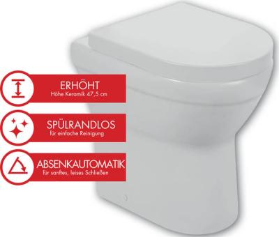 - Komfortable Höhe: 475 mm ohne WC-Sitz