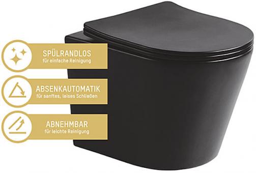 - Lieferung sanicomfort Keramik Tiefspül Wand-WC Nakia spülrandlos schwarz matt inklusive WC-Sitz mit Absenkautomatik, abnehmbar