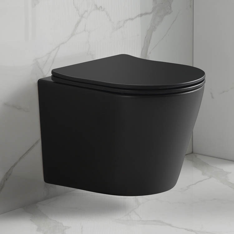 Produktbeschreibung sanicomfort Keramik Tiefspül Wand-WC Set Nakia spülrandlos schwarz matt: