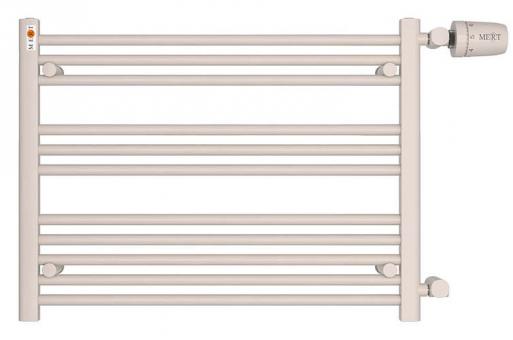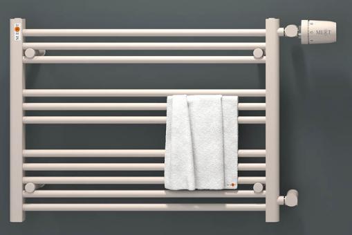 Ersetzen Sie Ihren alten Badheizkörper einfach und schnell durch einen neuen Mert Austausch-Badheizkörper mit 500 mm Nabenabstand und variabler Anschlussmöglichkeit seitlich links oder rechts (den Heizkörper einfach um 180° drehen) ohne Änderung der alten Rohrleitungsanschlüsse und ohne Umbauarbeiten. Der Heizkörper ist gefertigt aus hochwertigem Stahl und wurde getestet unter 13,5 Bar Betriebsdruck. Durch die großen Abstände zwischen den Querrohren können Ihre Handtücher besonders leicht und gut aufgehängt werden und trocknen; der Badheizkörper passt vom Stil her in jedes Badezimmer und sorgt für eine angenehme Wärme und Behaglichkeit.