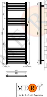 Ersetzen Sie Ihren alten Badheizkörper einfach und schnell durch einen neuen Mert Austausch-Badheizkörper mit 900 mm Nabenabstand und variabler Anschlussmöglichkeit seitlich links oder rechts (den Heizkörper einfach um 180° drehen) ohne Änderung der alten Rohrleitungsanschlüsse und ohne Umbauarbeiten. Der Heizkörper ist gefertigt aus hochwertigem Stahl und wurde getestet unter 13,5 Bar Betriebsdruck. Durch die großen Abstände zwischen den Querrohren können Ihre Handtücher besonders leicht und gut aufgehängt werden und trocknen; der Badheizkörper passt vom Stil her in jedes Badezimmer und sorgt für eine angenehme Wärme und Behaglichkeit.