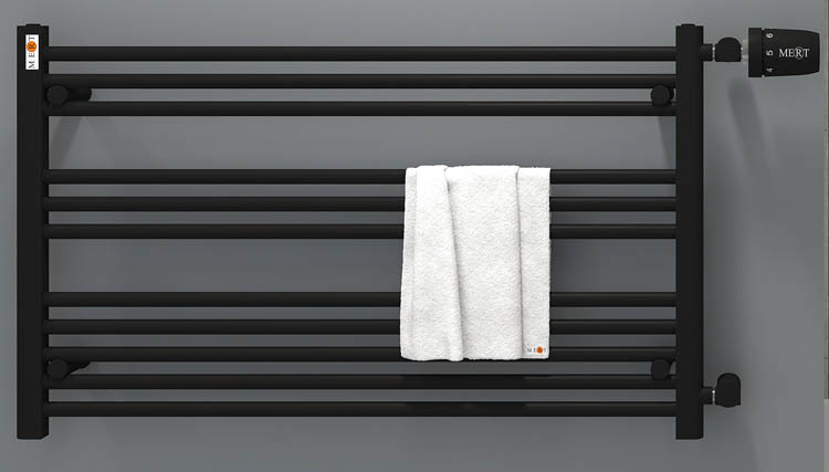 - Lieferumfang 1 Stück Mert Austauschheizkörper ASR Anschluss Seite Nabenabstand 500 mm tiefschwarz RAL 9005 matt ohne Anschlussgarnitur und Handtuch