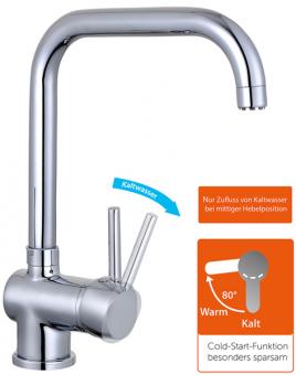 - Energiesparend durch Cold Start-Technik - nur Zufluss von Kaltwasser bei Hebelmittelstellung
