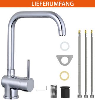 - Lieferung Niederdruck Einhand Spültischarmatur hoher Auslauf chromoptik inklusive Schnellbefestigungsset (Zentralverschraubung) für eine leichte Installation und Montageanleitung