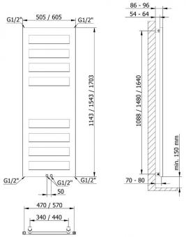 - Maße Höhe x Breite x Tiefe: 1543x505x86-96 mm