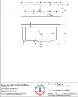 - Lieferung Schröder Acryl Badewanne mit Tür Puerta 170x80x40 cm links ausgestattet wie oben angegeben ohne Dekoration, Handbrause und Armatur