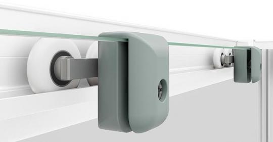 - Im oberen Rahmenprofil Gleiter mit Doppelrollen für mehr Laufruhe und Halt der Türen