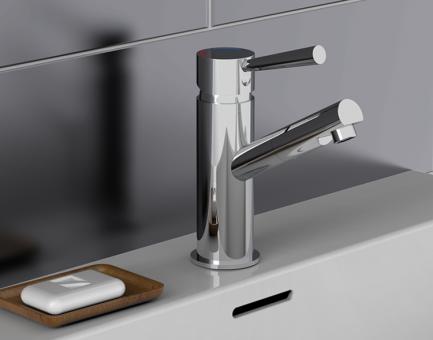 Formschöne Niederdruck Einhand-Waschbeckenarmatur mit hohem Auslauf in modernem Design mit hochwertiger Ausstattung und Verarbeitung.